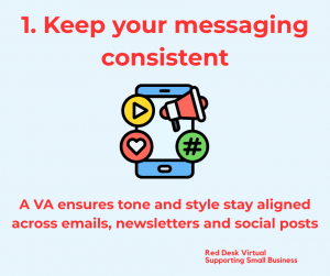 A VA helps maintain consistency – using your brand voice and agreed style across all channels, from newsletters to website updates. They can keep your messaging aligned so every interaction feels professional and on-brand.