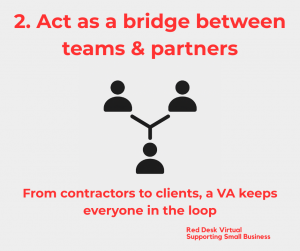 A VA often becomes the bridge that connects the moving parts of your organisation.